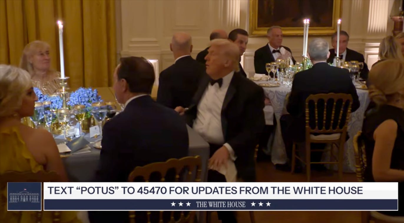 But that was the point. This dinner was only about sending a visual message. About reminding the people in that room, and the ones watching from outside, that the show goes on no matter what. That there’s still plenty of money. That power is intact, and that loyalty is rewarded. Because these are the governors who stood by him. Even as he’s tried to dismantle constitutional checks. Even as he’s threatened political enemies. Even as the legal walls close in. And like authoritarian leaders before him, Trump understands something very clearly: if you can surround yourself with gold and music and deference, you can sell the illusion that everything is fine. That there’s nothing to worry about. That the chaos you’re causing isn’t real, because look, there’s a violinist playing, and the flowers are beautiful, and the president looks steady at the head of the table.